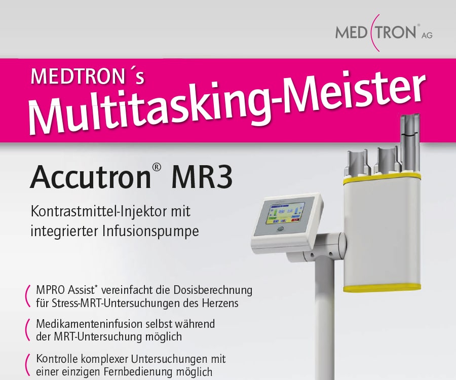 - Расширение возможностей клинического применения: Accutron® MR3 позволяет проводить фармакологические МРТ стресс-тесты сердца.
