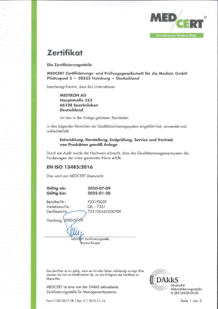 Zertifikat EN ISO 13485:2016 + AC:2018 + A11:2021